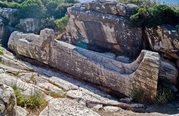 Au sommet de la colline qui surplombe la carrière, on peut lire l'inscription suivante : « Montagne sacrée d'Apollon ». Elle date du 7e-6e siècle avant JC et appartient probablement à un sanctuaire du dieu qui existait à cet endroit.