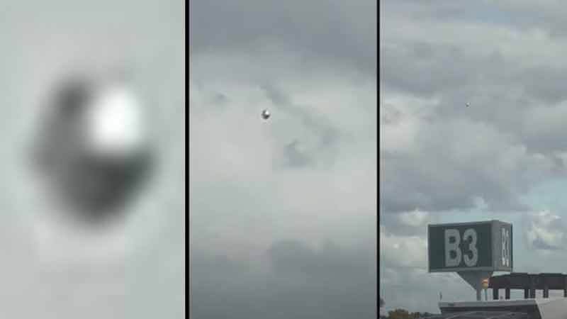 Les images filmées en direct montrent un orbe argenté en vol stationnaire dans le ciel, dont la surface métallique brille sous la lumière du soleil. L'orbe maintient une position constante, défiant les caractéristiques généralement associées aux avions conventionnels.